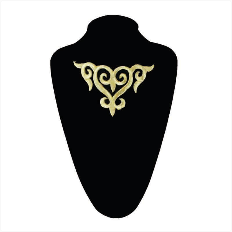 Aplicação de fio metálico em formato de triângulo. Este aplique faz parte de um grupo muito tradicional de apliques de costura, conhecidos como apliques eclesiásticos ou apliques litúrgicos pela sua ampla utilização dentro do vestuário religioso, porém seu uso entre designers. Proporcionará brilho e textura, um detalhe clássico para complementar uma peça.