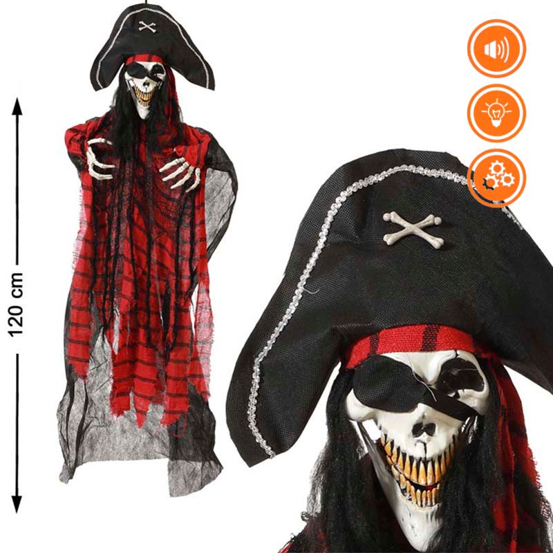 Boneco Esqueleto Pirata 120cm com luz, som e movimento