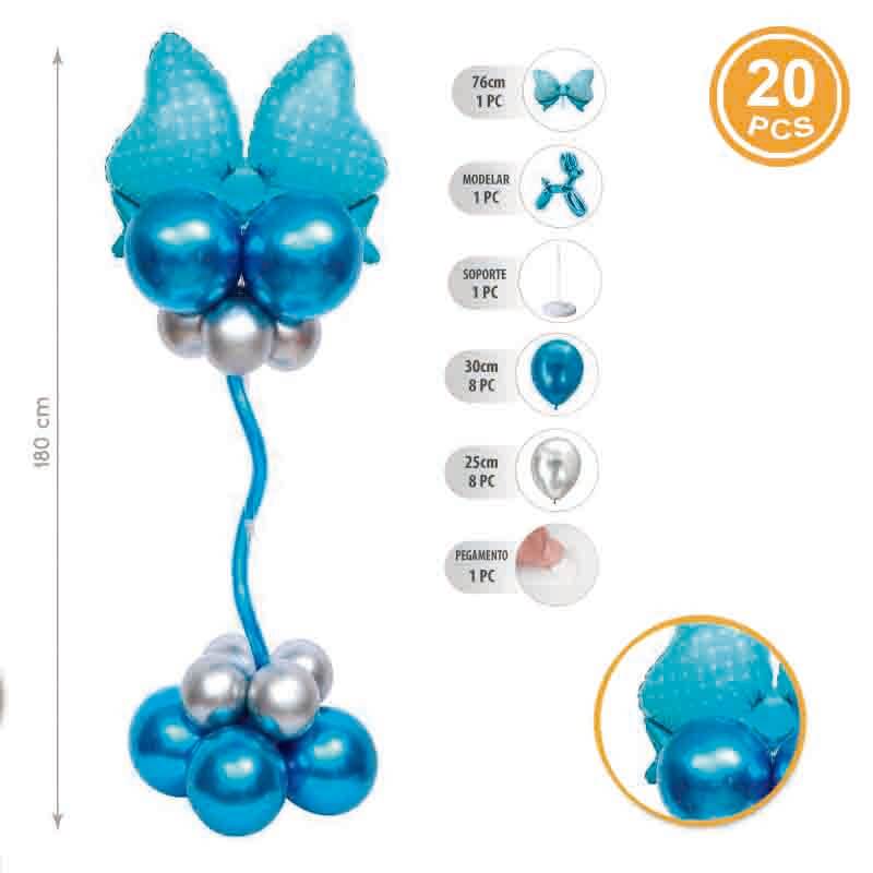 Coluna Balões com Laço 1.80m (inclui 20pcs. 1 laço 76cm. 8 balões 30cm. 8 balões 25cm. 1 balão modelar. cola dupla face e 1 suporte)