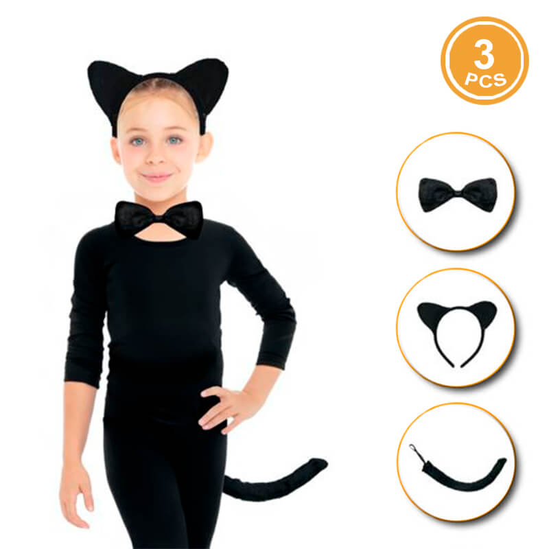 Conjunto Gato Preto Criança. Inclui: Bandolete. Laço e Cauda