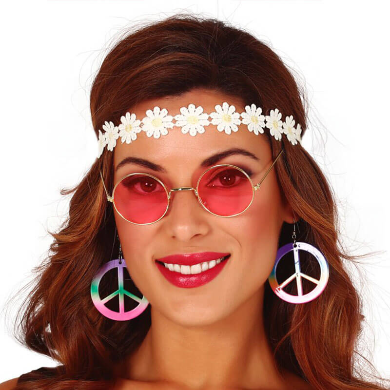 Conjunto Hippie 3 pcs. Inclui: Fita de Cabeça. Óculos e Brinco.