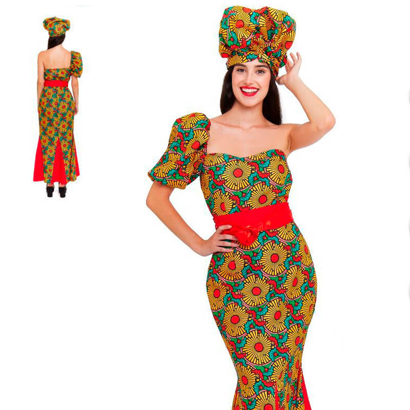 Fato Africana Streetwear. Inclui: Vestido. Cinto e Turbante.