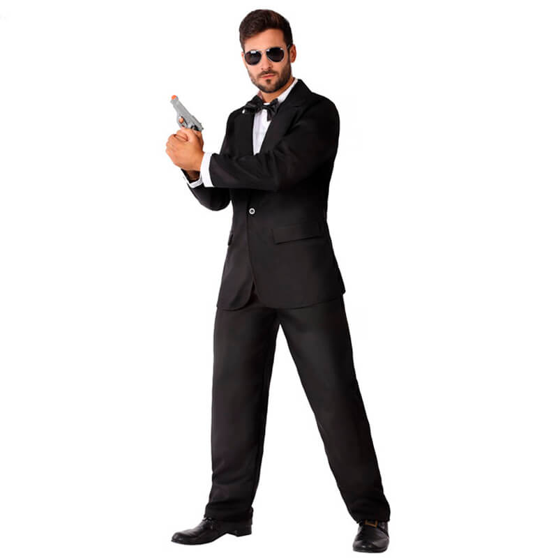 Fato Agente. Inclui: Calças. Casaco e Camisa com laço. O restante não está incluído.