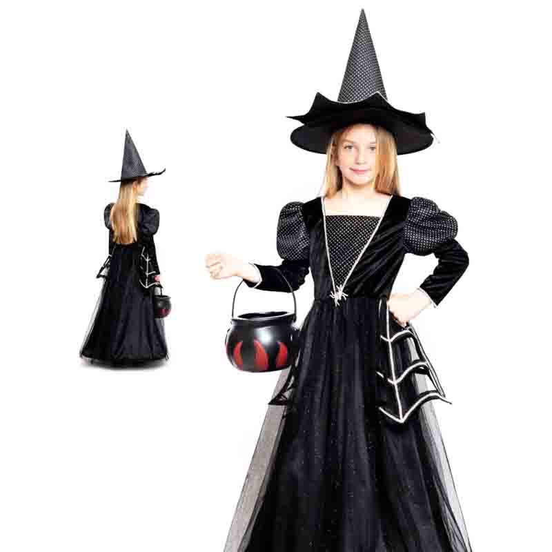 Fato Bruxa Premium de Criança. Inclui: Vestido e Chapéu. O restante não está incluído.