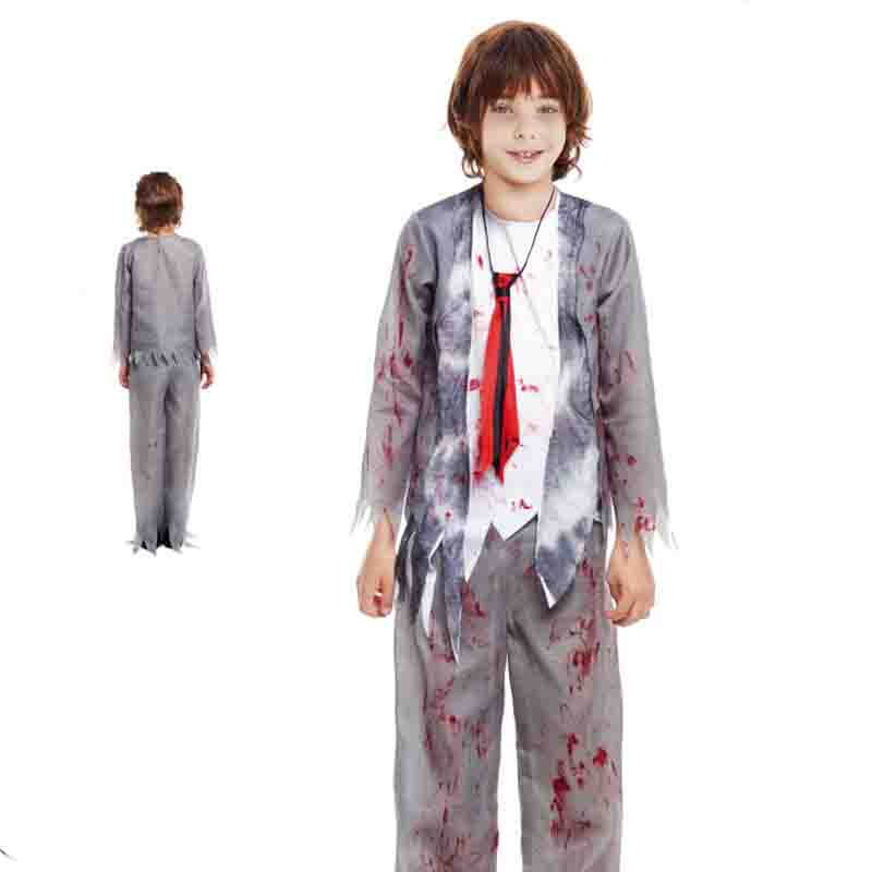 Fato Colegial Zombie de Criança. Inclui: Camisa. Calças e Gravata. O restante não está incluído.