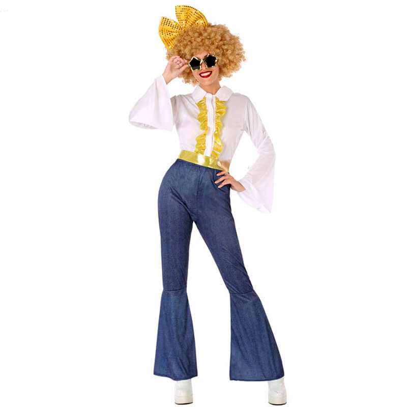 Fato Disco. Inclui: Calças. Cinto e Camisa com folhos. O restante não está incluído.