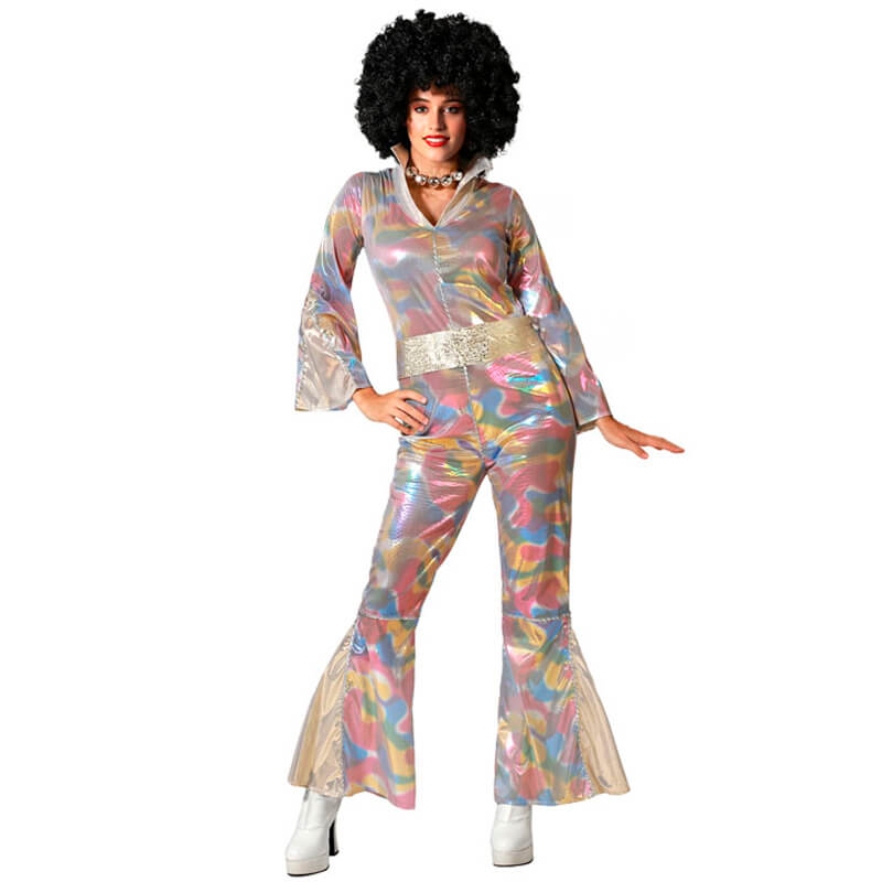 Fato Disco Multicolor. Inclui: Macacão e Cinto.