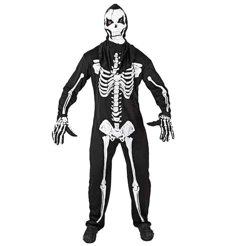 Fato Esqueleto de Adulto. Inclui: Macacão. Capuz e Luvas. O restante não está incluído.