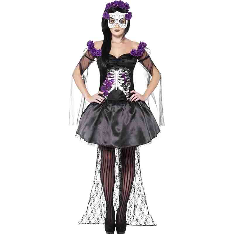 Fato Esqueleto Catrina de Adulto. Inclui: Top. Saia. Bandolete e Máscara. O restante não está incluído.