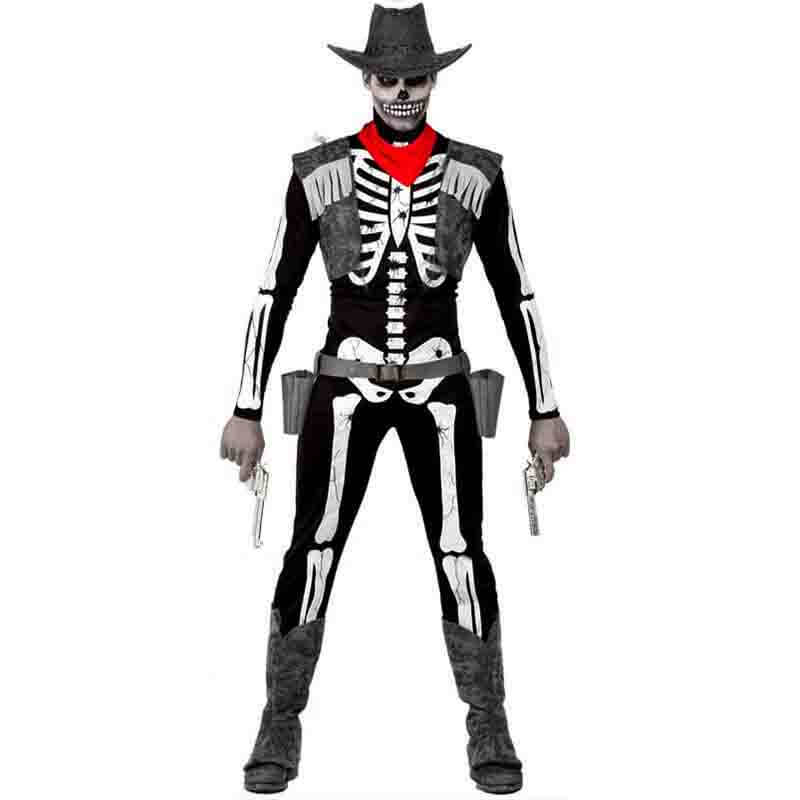 Fato Esqueleto Dandy de Adulto. Inclui: Jaqueta com Colarinho e Gravata. Calças e Chapéu. O restante não está incluído