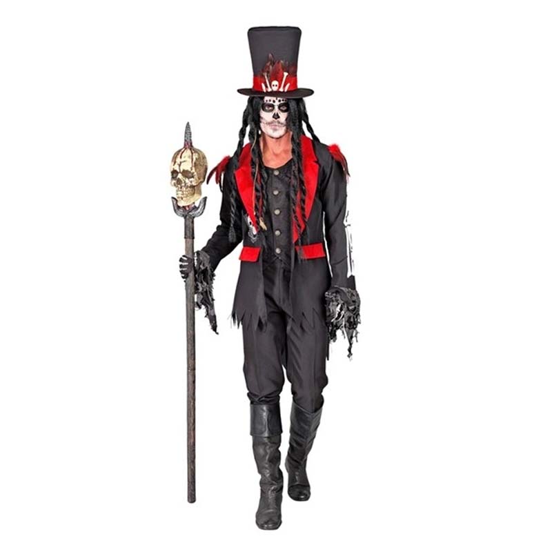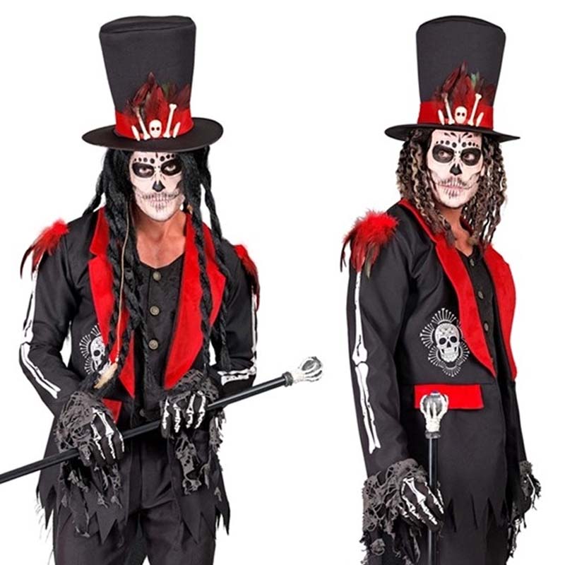 Fato Esqueleto Voodoo. Inclui casaco com colete e chapéu