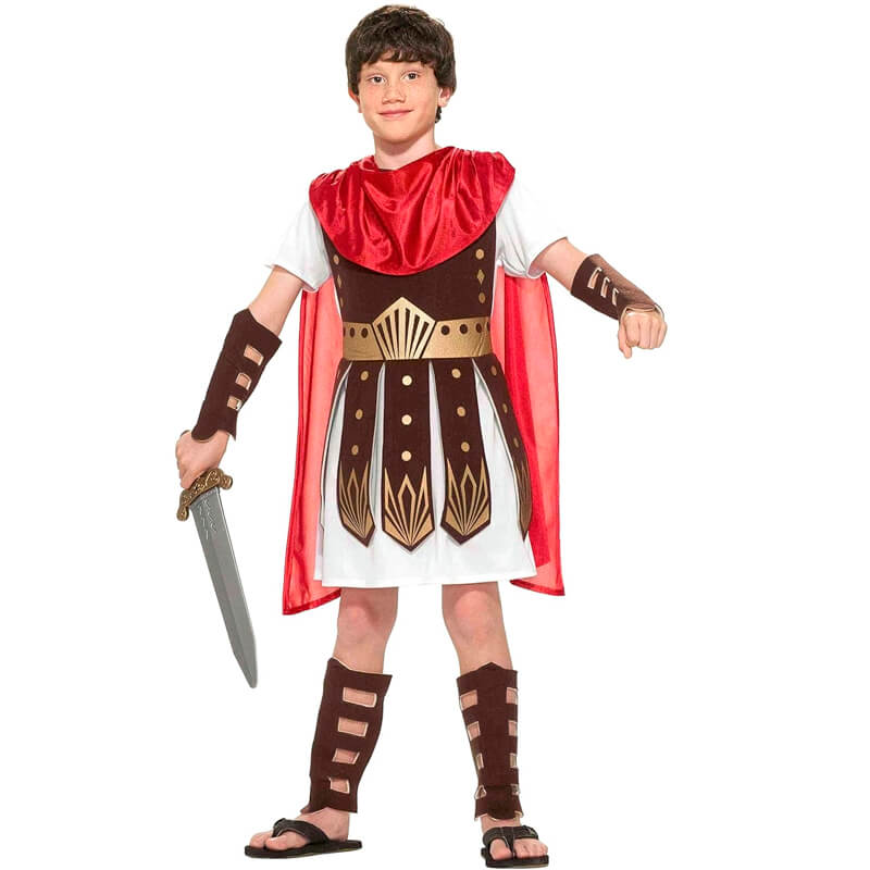 Fato Galdiador Romano. Inclui: Túnica com Armadura, Capa, Braceletes e Perneiras.