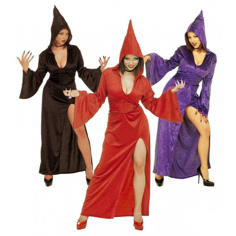 Fato Gótica Veludo. Inclui: Vestido de veludo com capuz e Cinto. O restante não está incluído.
