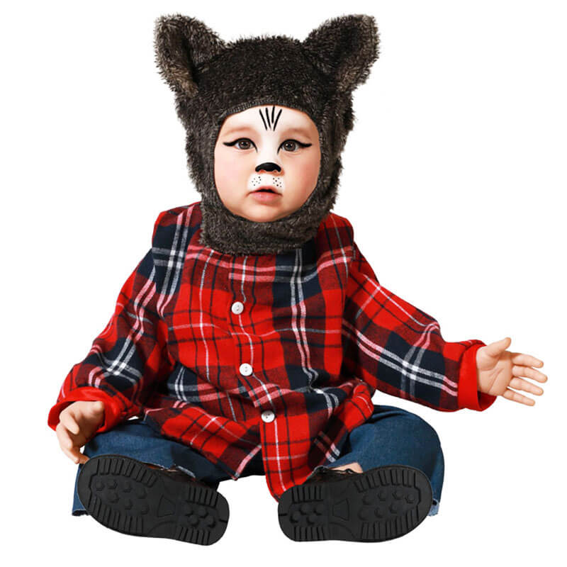 Fato Lobisomem de Bebé. Inclui: Camisa. Calças e Capuz. O restante não está incluído