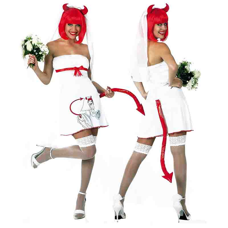 Fato Noiva Diaba de Adulto. Inclui: Vestido. Cauda e Bandolete com Véu. O restante não está incluído.