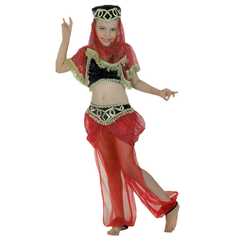 Fato Princesa Árabe Vermelho. Inclui: Top. Calças e Chapéu.