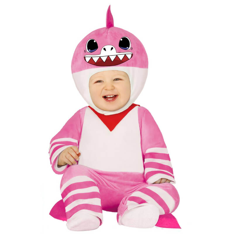 Fato Tubarão Rosa. Inclui: Macacão. Cabeça e Lenço.
