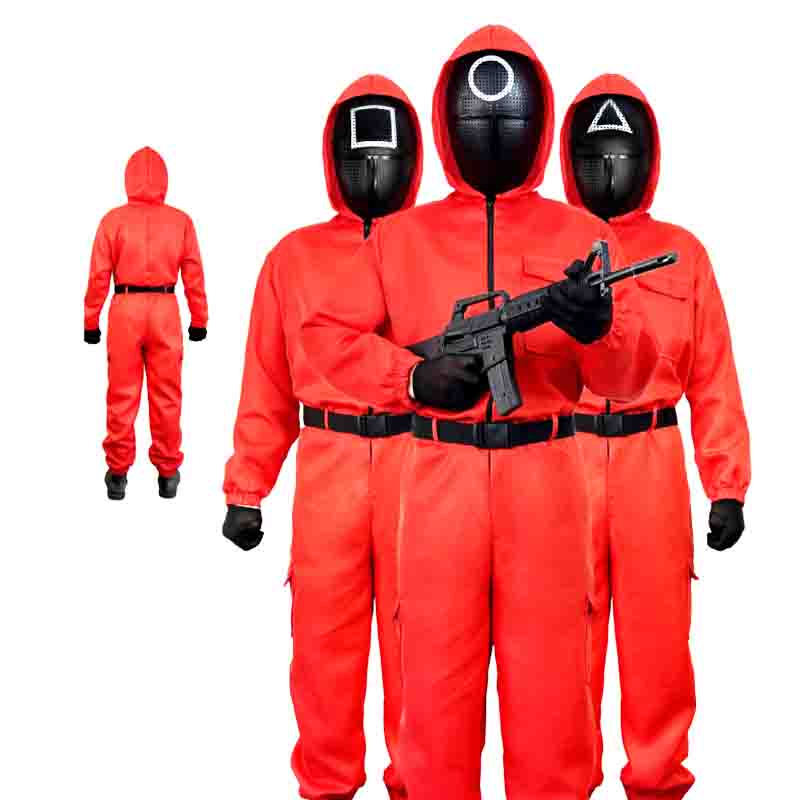 Fato Vigilante Vermelho de Adulto. Inclui: Macacão e Cinto. O restante não está incluído.