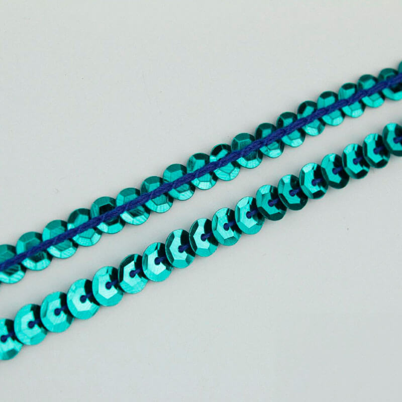 Fita de lantejoula de brilho metálico em azul turquesa escuro. O preço é por metro.