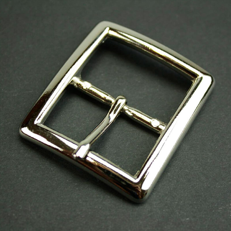 Fivela retangular de metal na cor prata com seção dupla, levemente curvada, pino de fixação e moldura biselada. Tamanho interno (largura da correia): 30 mm. O preço é por unidade.
