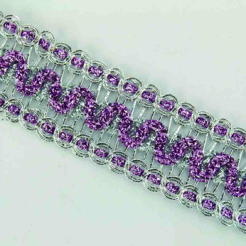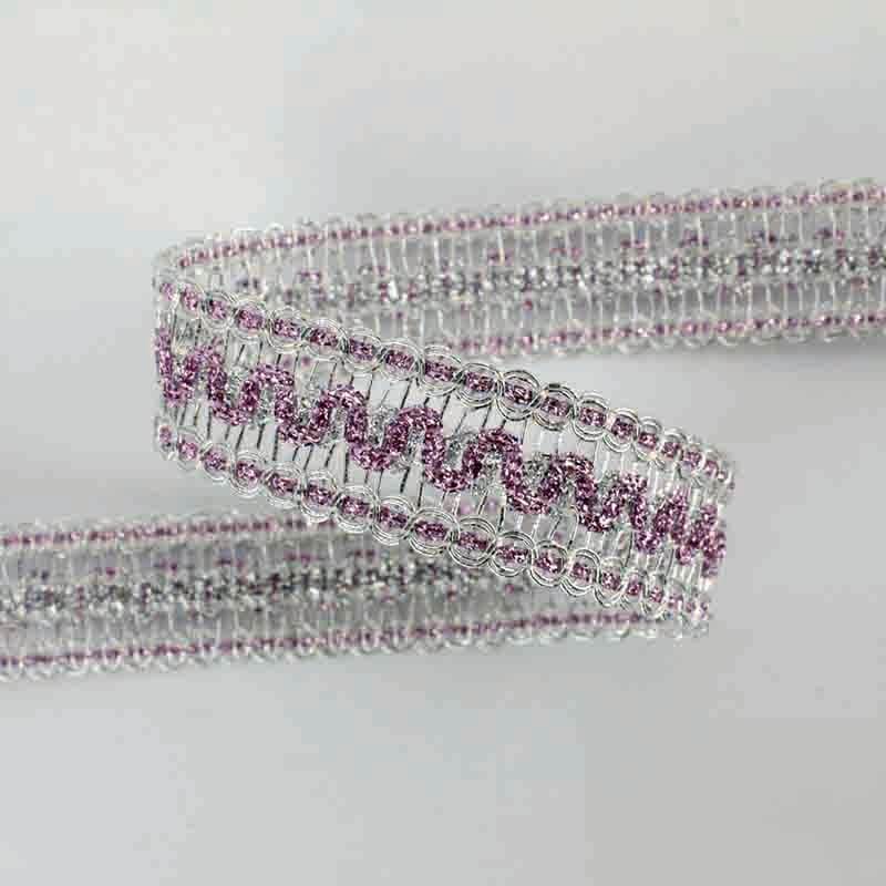 Galão de guarnições prateadas com ornamento central colorido de ondulina.