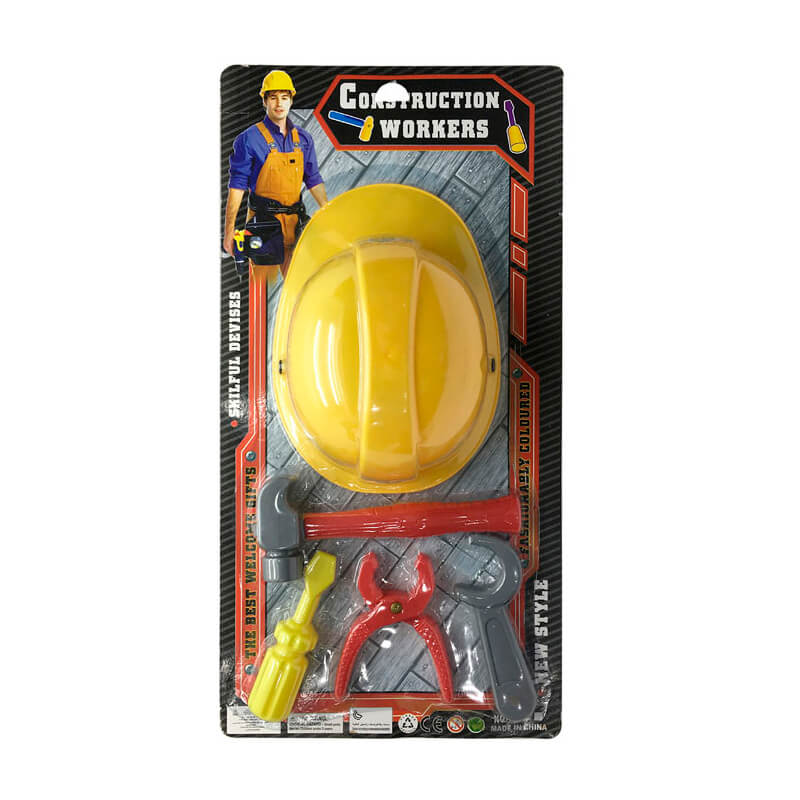 Kit Trabalhador Criança 5 pcs. Inclui: Capacete. Martelo. Chave de fendas. Alicate e Chave.