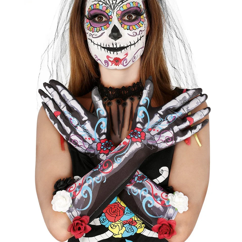 Luvas Caveira Mexicana com Rosas Adulto