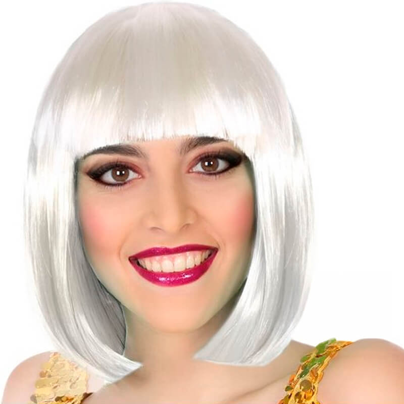 Peruca Curta Branco-Cinza