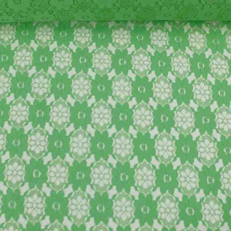 Renda com motivos florais em padrão bordado, ideal para confeccionar blusas, vestidos, etc.