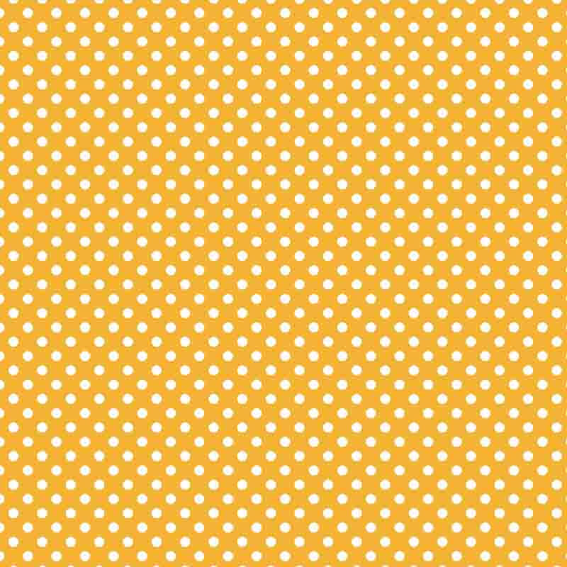 Tecido 100% algodão estampado de pintas brancas de 4 mm em fundo amarelo mostrada.